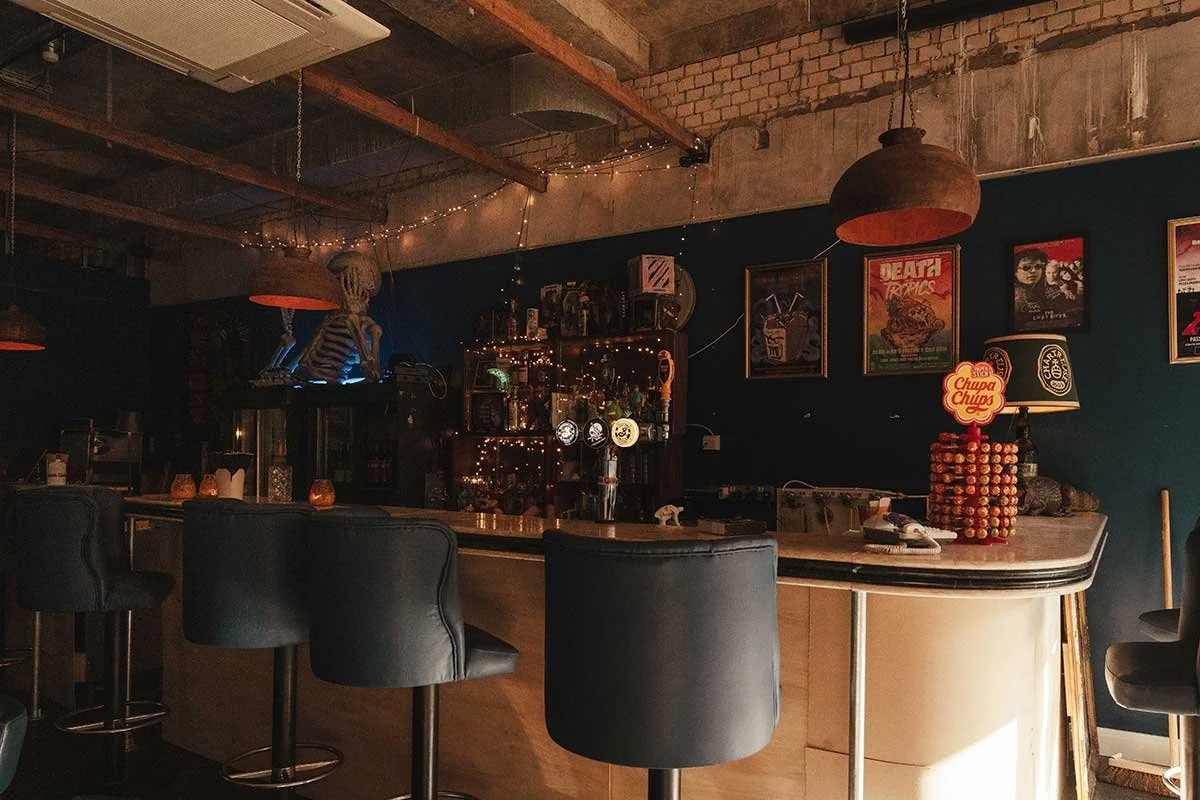 Named after the fictional town in the 80s cult vampire movie The Lost Boys, Santa Carla is a space shaped by nostalgia, subculture and a healthy nod to a love of horror with a towering skeleton and a mural of horror heroes.