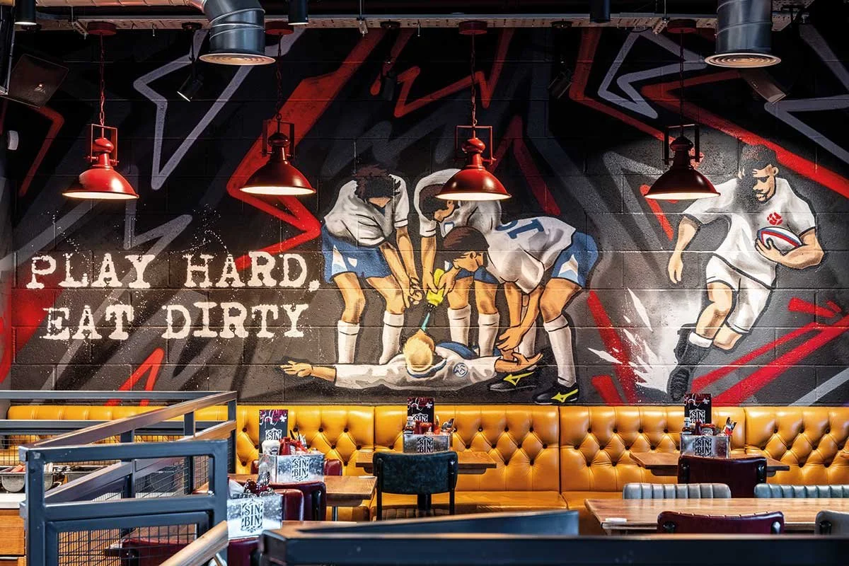 Visually, it’s just as impactful. London graffiti artist James Titchner has brought the space to life with striking murals, paired with a bespoke resin bar-top celebrating iconic sporting moments.