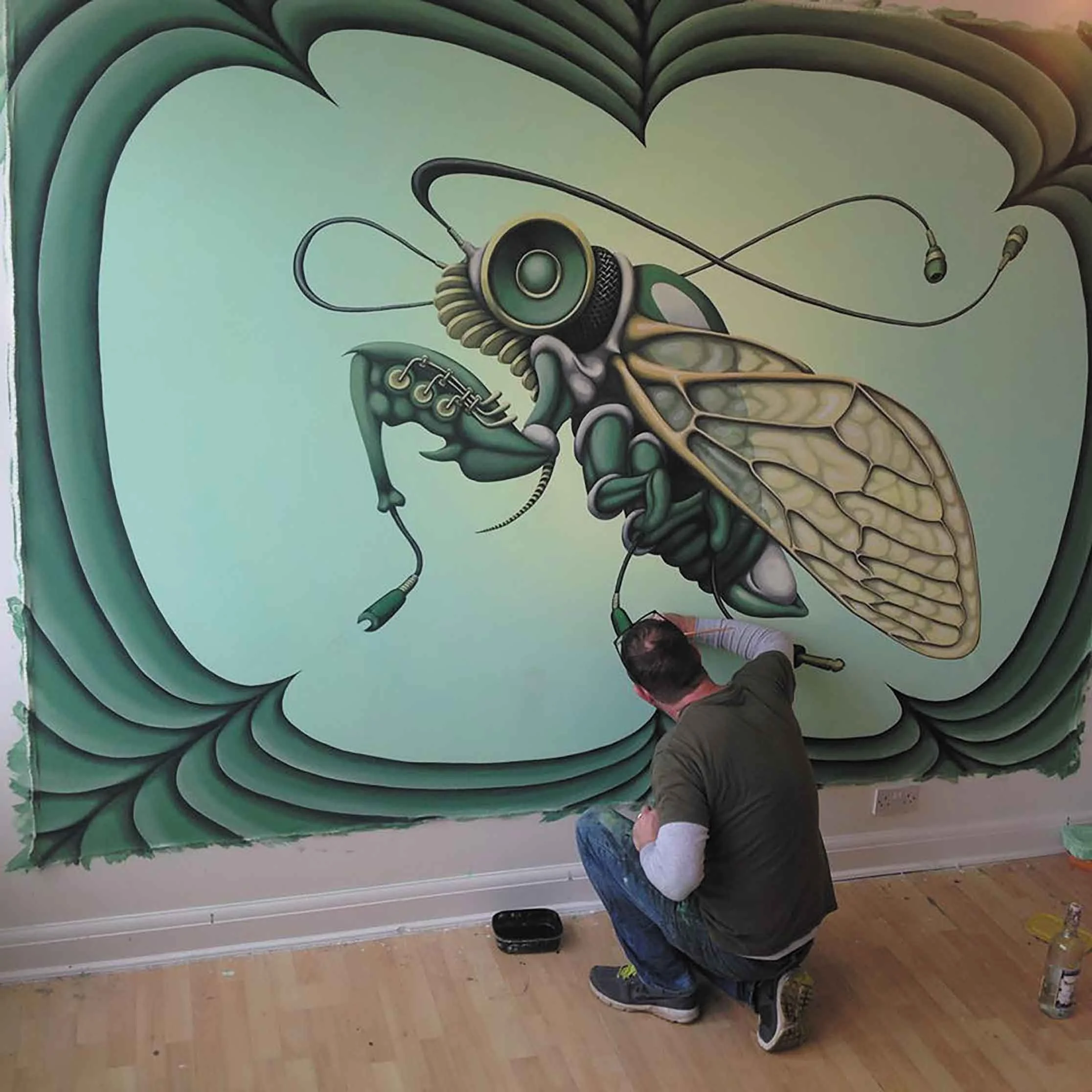 “I was always into drawing and creating,” he explains. “And then I discovered raves. At first, it was the UV that grabbed me. The impact of fluorescent colours in the dark, it was really powerful. But the novelty wore off pretty quick. It was all just acid-house smileys and flying saucers. I remember thinking ‘They’re missing a trick here’.”