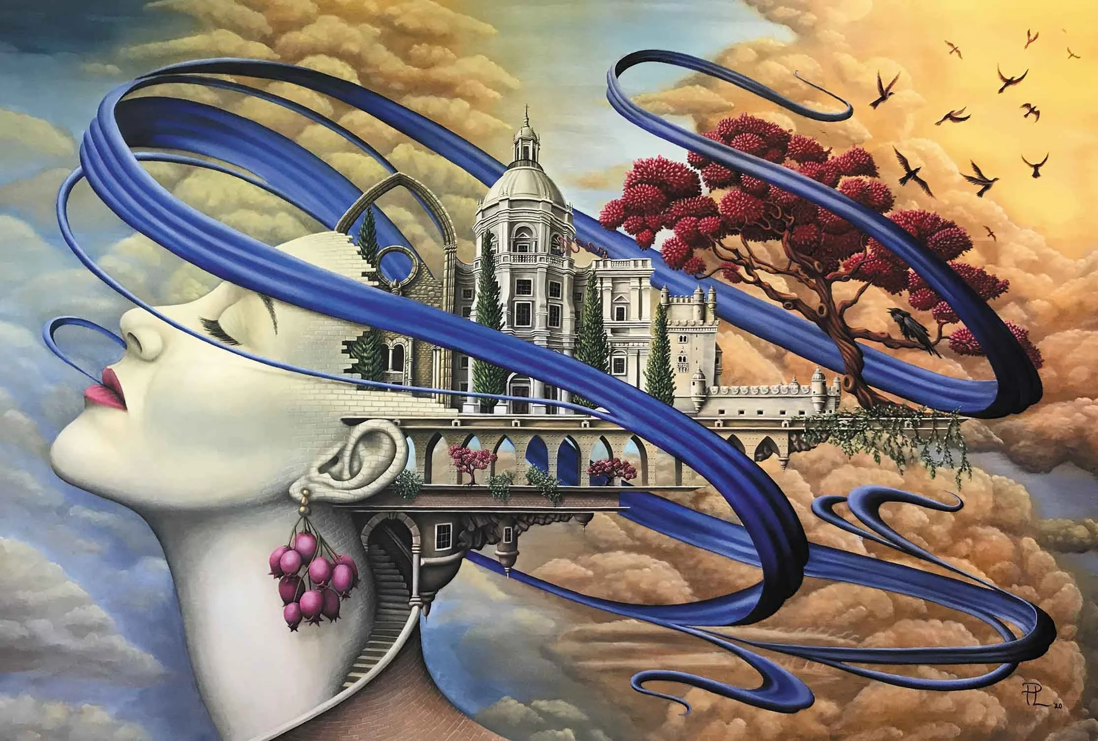 “It’s not surrealism, it’s not realism, it’s not abstract… I don’t really know what it is. I guess it’s illustrative with a trippy edge. I want it to grab you viscerally and then invite you into a journey.”