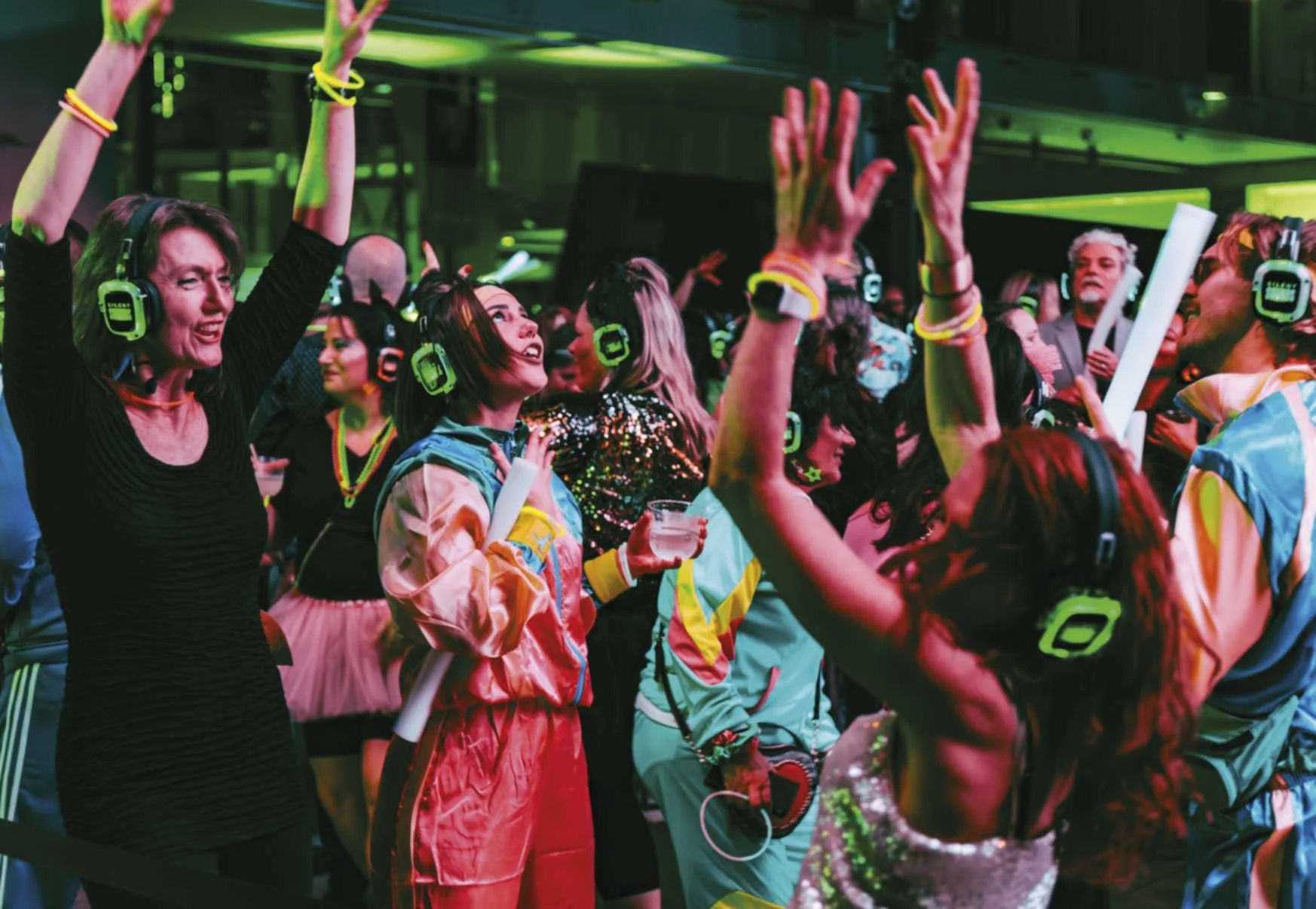 Put on the LED light-up wireless headphones, choose your decade and let’s boogie!